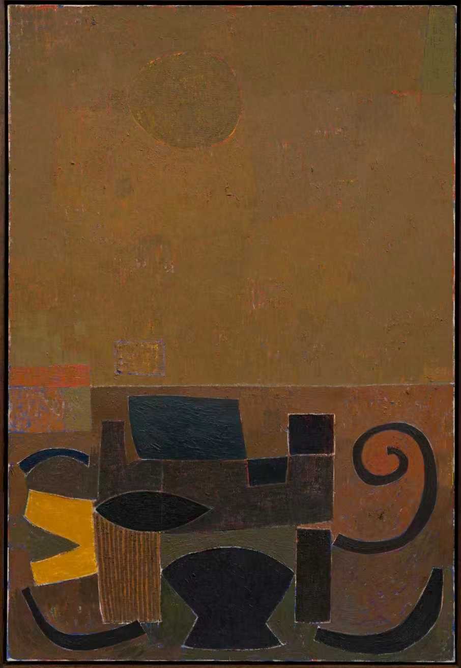 Miyoko Ito’s works from the 1950s represent the most prized period of her career, marking the crystallization of her unique artistic language. With a restrained yet tender touch, she transformed modernist abstraction into emotionally resonant, structural landscapes. These early works construct psychological spaces that hover between figuration and abstraction—defined by gentle geometric forms, layered planes of color, and luminous tonalities. They evoke tides, stones, or twilight atmospheres, containing immense tension beneath their quiet surfaces, setting Ito apart among postwar abstract painters.