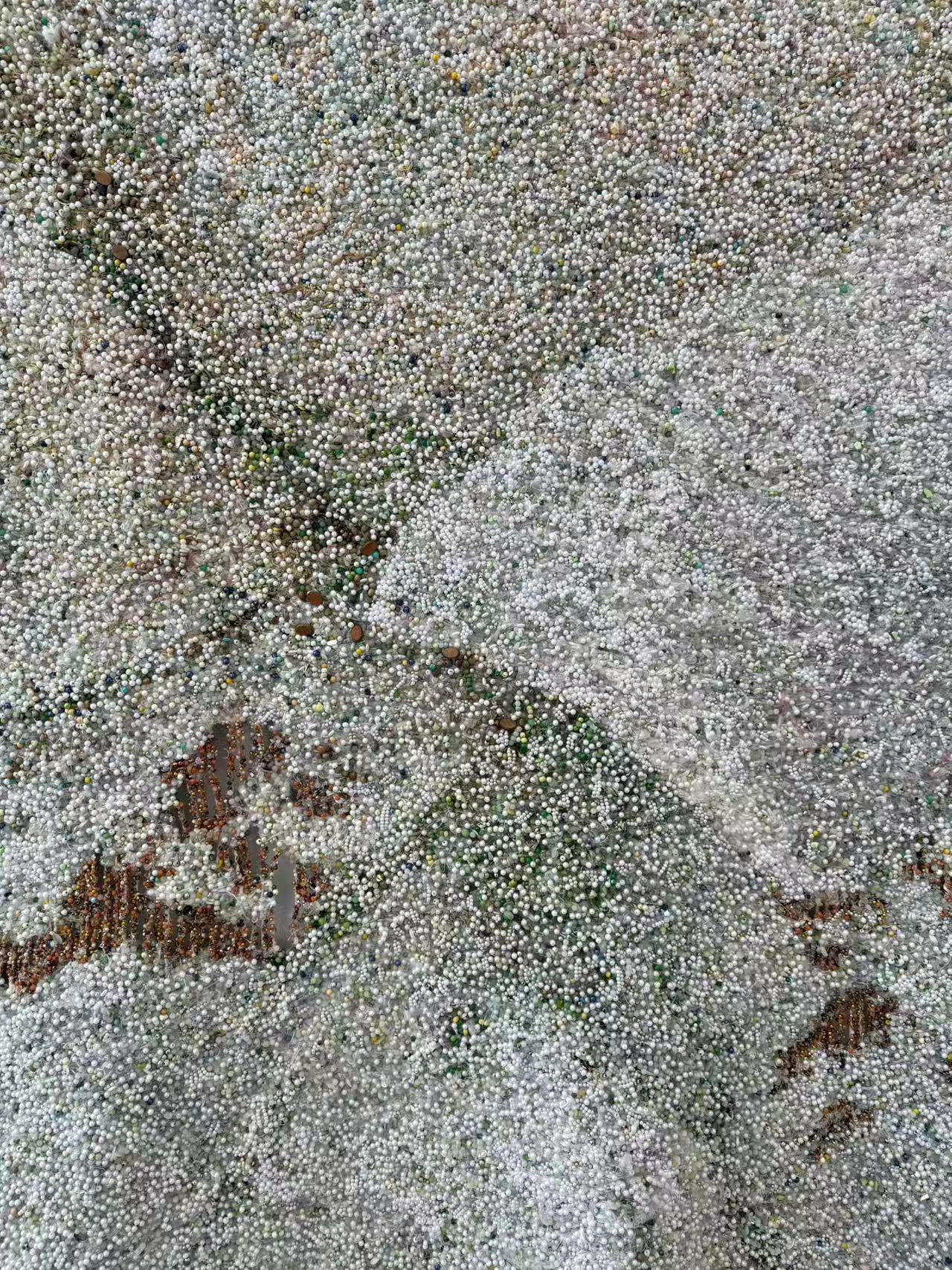 In recent years, we have repeatedly encountered the work of Igshaan Adams across the globe. From the nearly seven-meter-wide monumental work at the Stedelijk Museum Amsterdam, donated jointly by a group of leading collectors, to his solo booth at Art Basel Hong Kong this year, as well as his participation in the 59th Venice Biennale (La Biennale di Venezia), Adams’s presence has become increasingly visible. His soft sculptural works—resembling suspended rivers—allow cascades of multicolored beads to flow downward, as if time itself has momentarily crystallized in space. From a distance, they appear fluid and expansive; up close, the shimmering beads and fibrous threads cease to be mere materials and instead evoke a flowing galaxy, carrying a quiet yet overwhelming force. Soft yet resilient, the works recall a primordial state of life itself. One senses memory and trace embedded within them, like invisible maps woven with prayer, labor, and dreams.