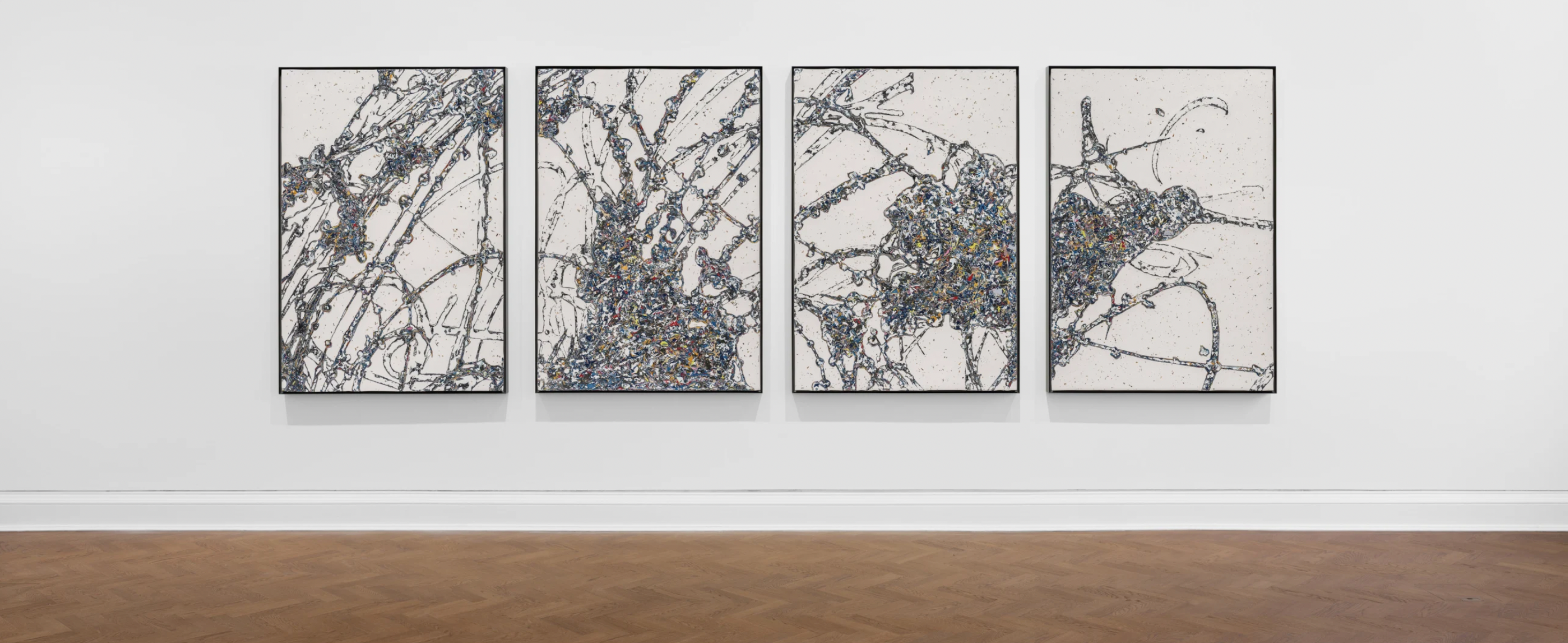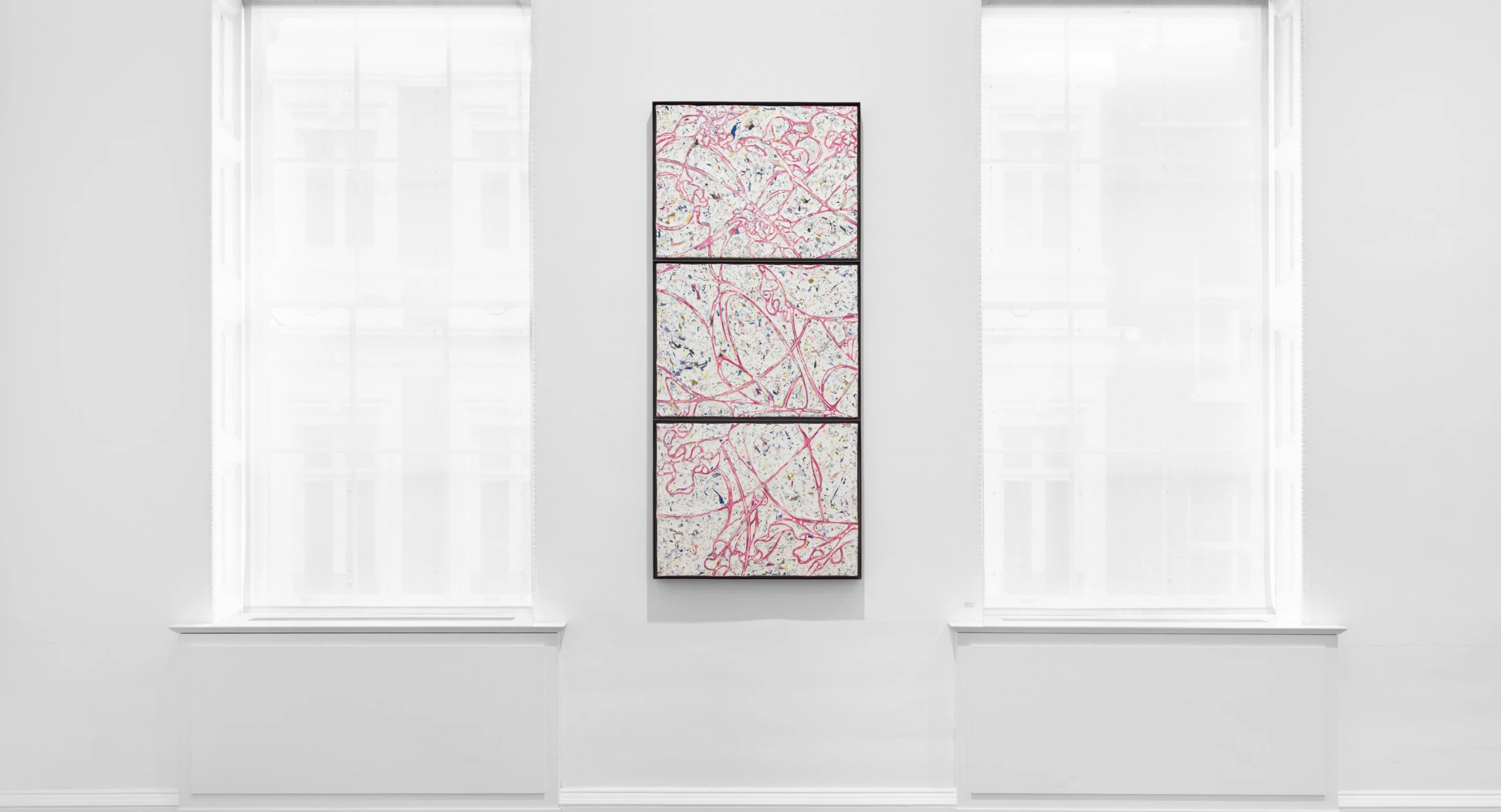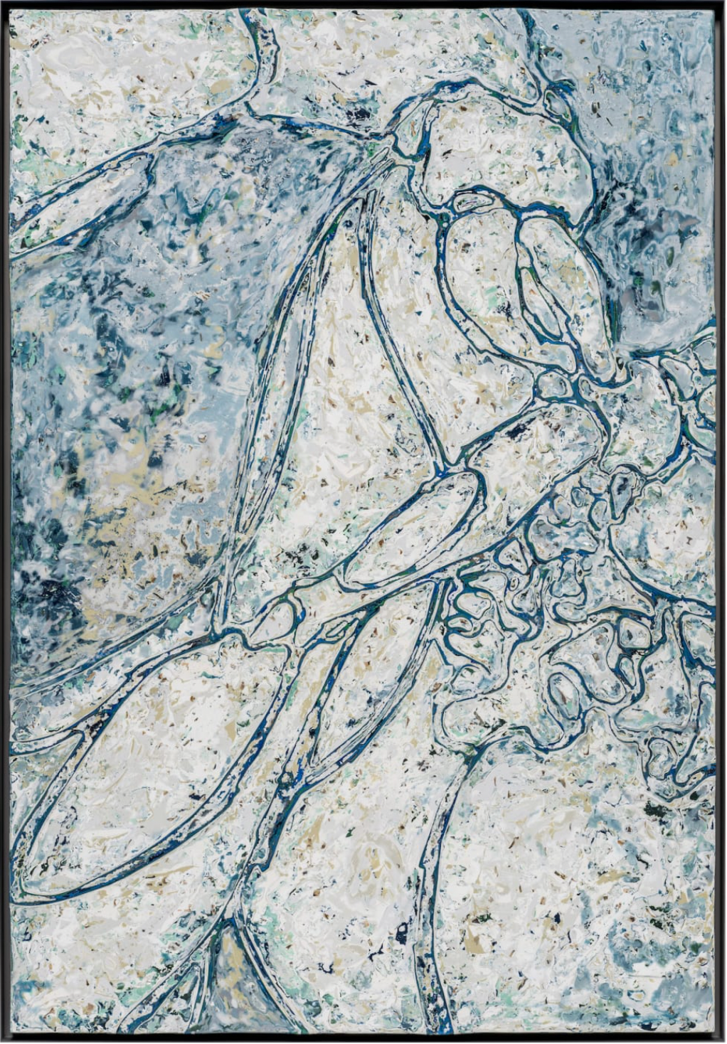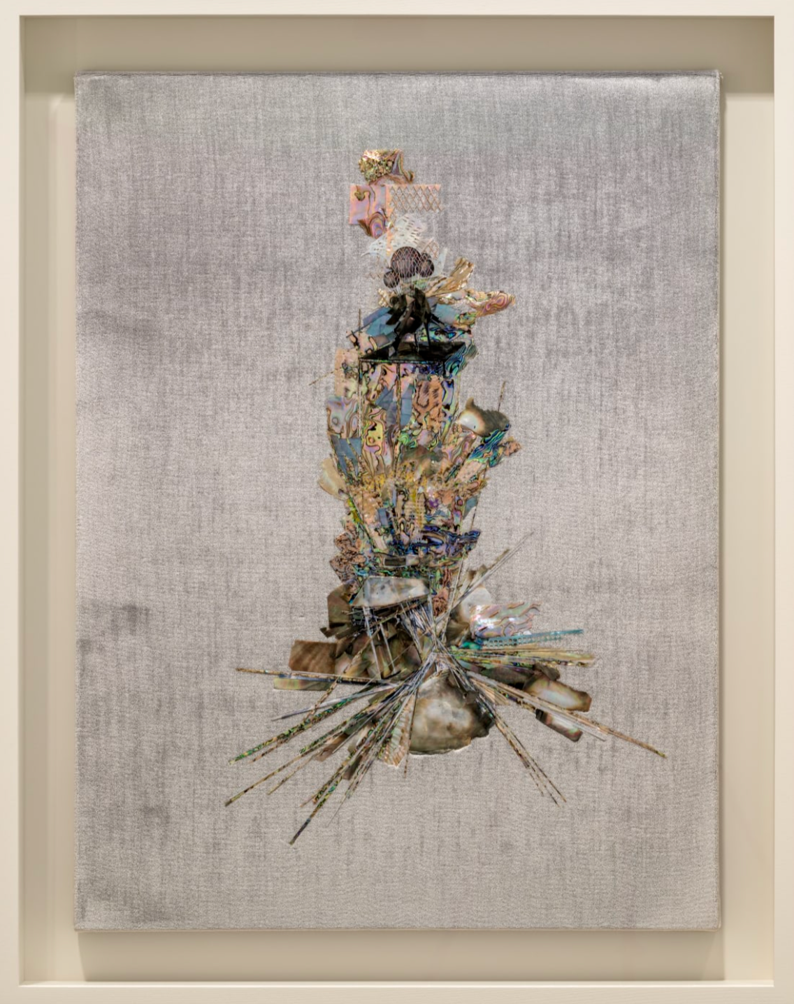 Lee Bul’s Perdu series emphasizes her ongoing investigation into the symbolic and physical potential of materials. Echoing her earlier experiments with velvet and fabric, the series directly interrogates materiality itself. Acrylic paint in varying tonalities is mixed with mother-of-pearl and layered onto wooden panels. Once dried, the surfaces are polished to achieve a marble-like effect. The underlying compositional lines are preserved through laser cutting and later refilled, resulting in a complex process that unexpectedly resonates with Western Abstract Expressionism, achieving a refined balance between aesthetic sensibility and structural rigor.